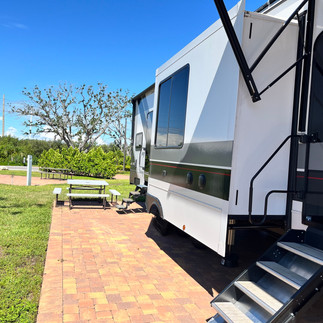 We started our Florida stay Sunday, nestled amongst the palm trees at the Keylime RV Resort. Very cute, quiet spot about 20 min from Paul’s worksite in Tampa. After the long two day drive, we hustled to get settled and finally have our much deserved happy hour Steigl (if you know Steigl, you know… it was refreshing!). Teetering between exhaustion and excitement we opted for a toddler-inspired dinner of pizza rolls. I wasn’t mad, they were the combo rolls and we had the “good ranch” for dipping.